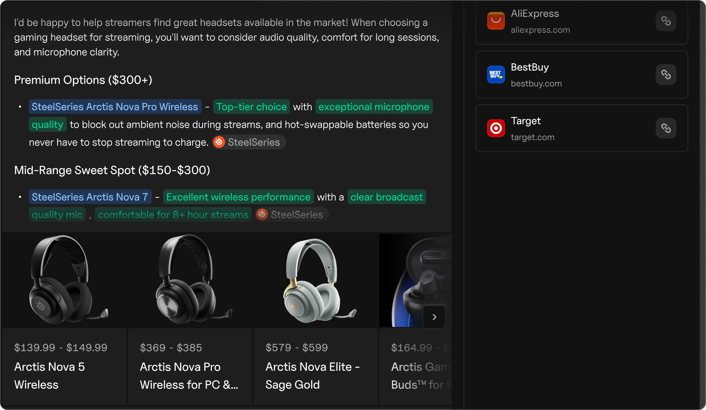 Agentic commerce refers to shopping experiences where AI agents not only recommend products but also facilitate or complete purchases on behalf of consumers. Unlike traditional search, agentic commerce occurs within the AI interface itself. Users describe what they’re looking for, and the AI presents purchasing options with integrated checkout.