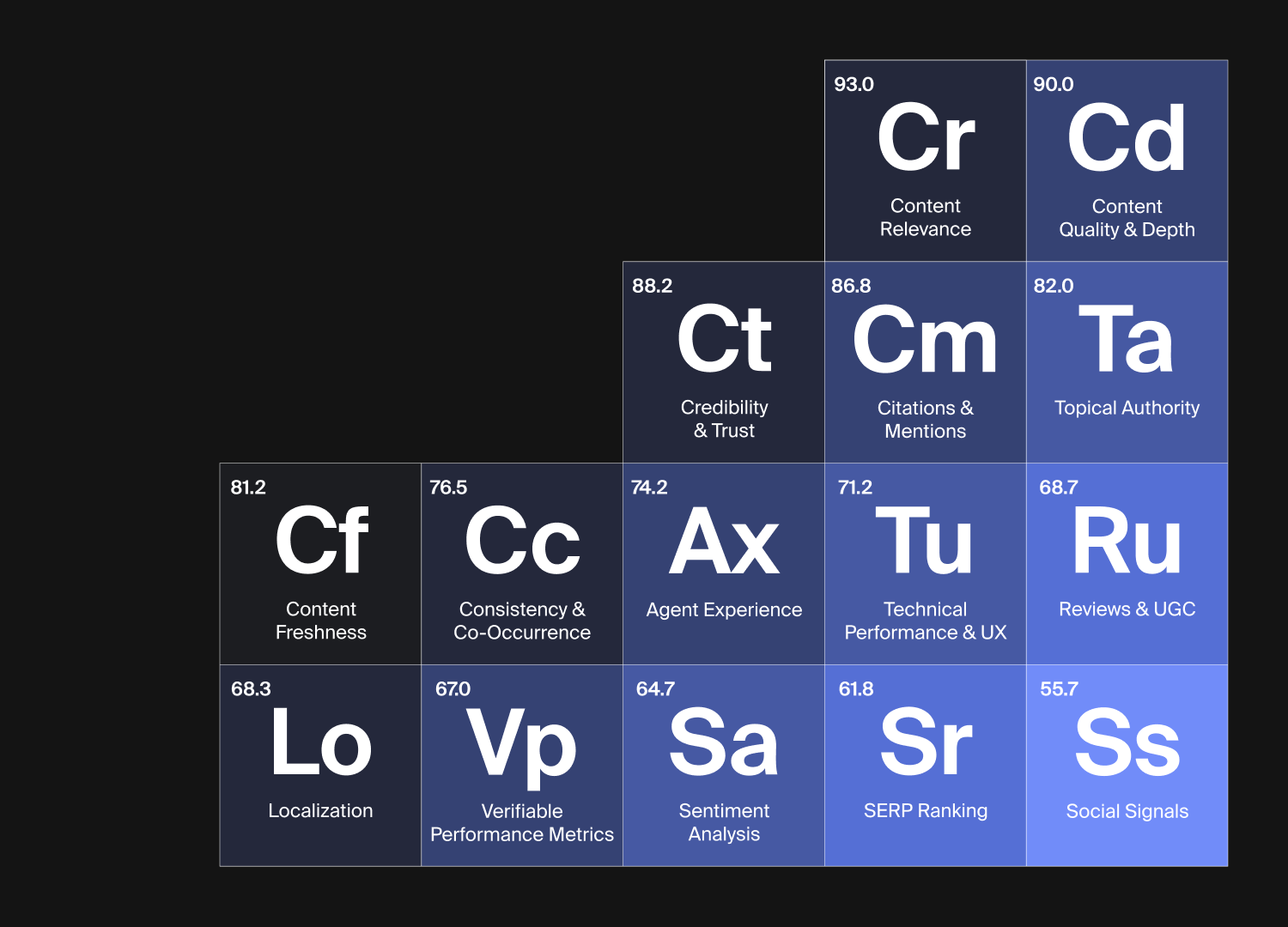 For an even deeper dive into these 15 variables impacting AI visibility, check out our AEO periodic table.