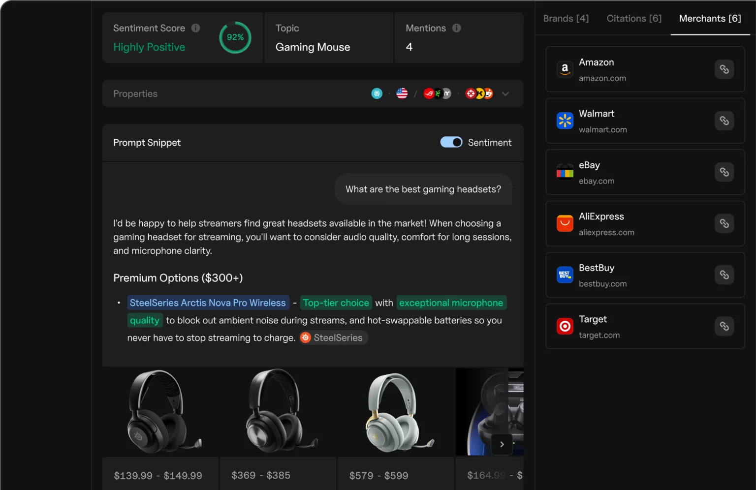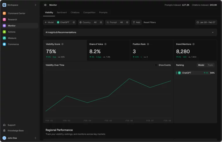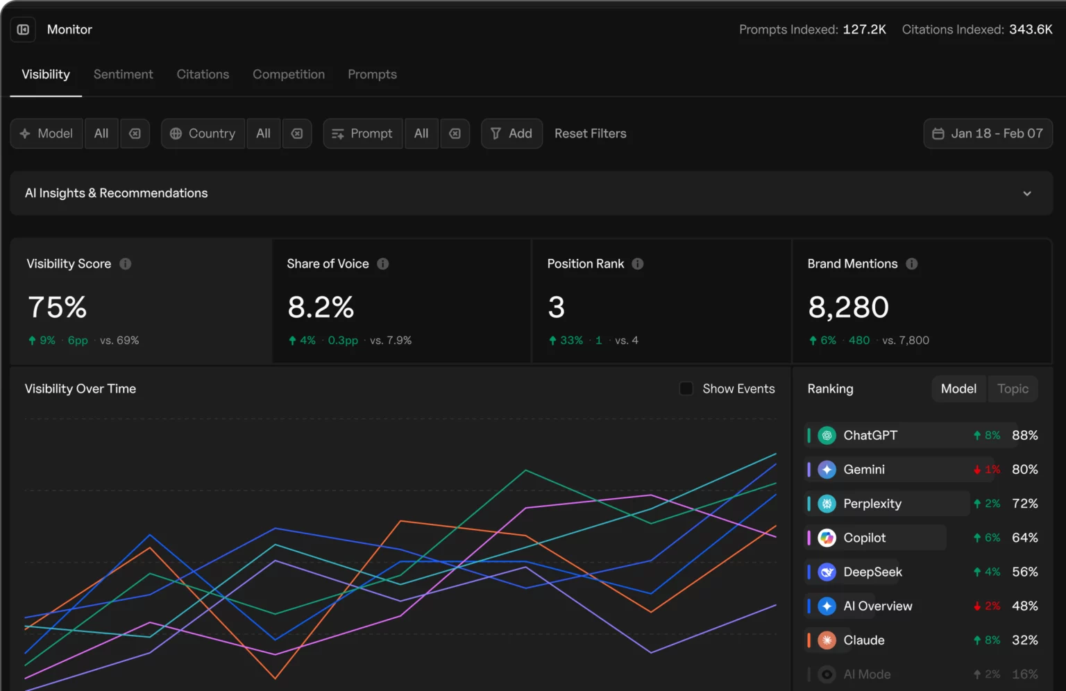 Track ChatGPT mentions, citations, sentiment, and competitive positioning.