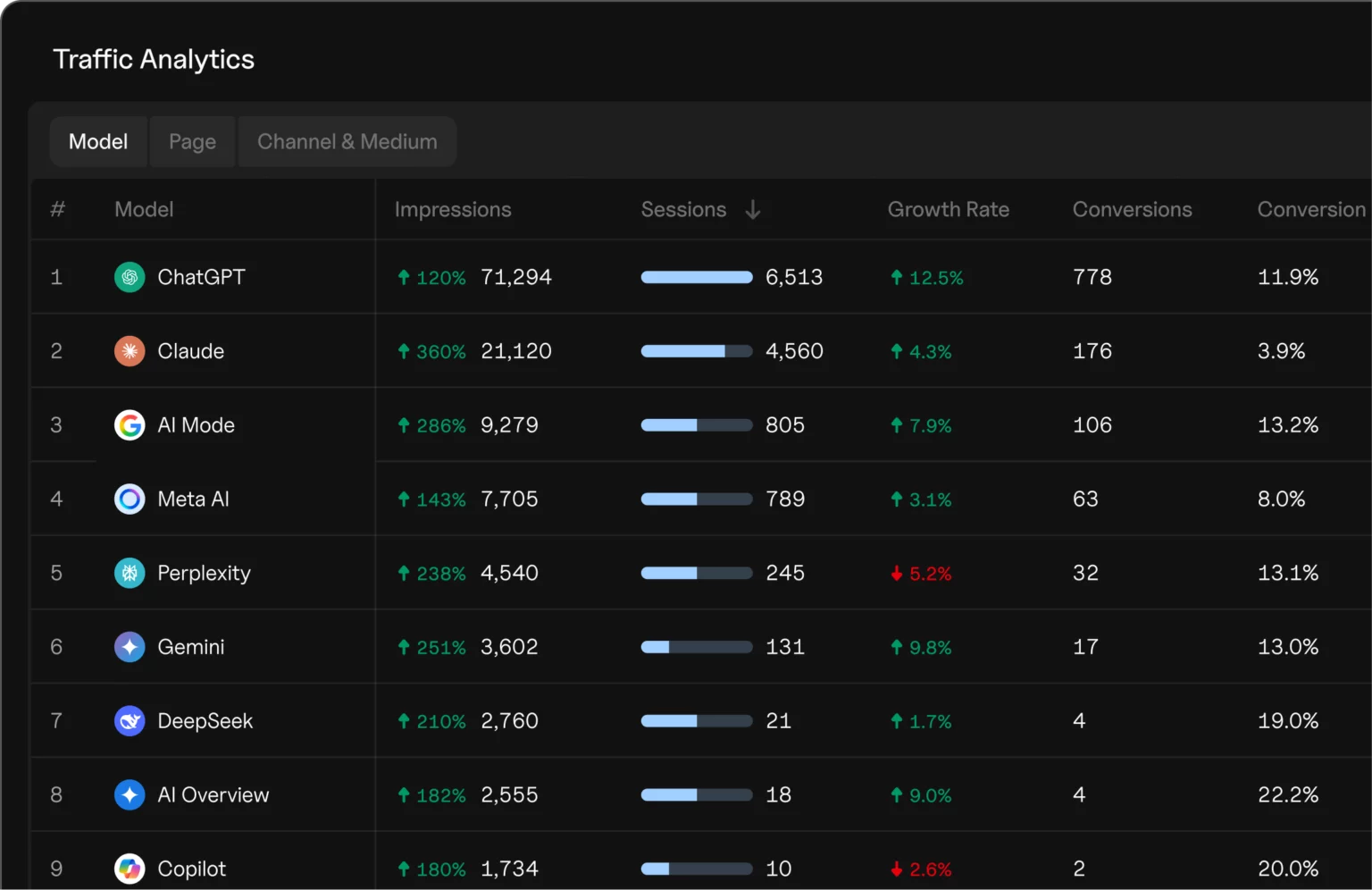 Measure ChatGPT-driven traffic and conversions to prove optimization drives revenue.
